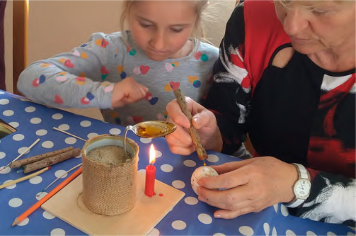 • Verzieren von sorbischen Ostereiern in der Wachs-Batik-Technik